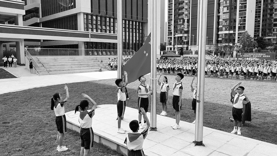 ▲开学第一天升旗仪式。 茂名日报社全媒体记者吴云杰摄
