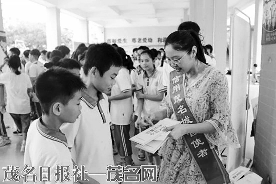 活动中,市城管执法局志愿者派发《茂名市信用手册》等宣传物料,耐心地向学生们普及诚信知识,与学生开展互动,引导学生加深对诚信行为的思考和理解,倡导学生与诚信为伴,争当“知诚信、讲诚信、守诚信”好学生。