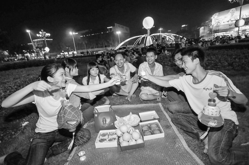 茂名沿着油城路由西往东一路发展,15年前市区中心广场周围已成为城市繁华商圈与居民住宅区。中心广场大草坪位于油城五路南侧、光华北路西侧,宽敞干净整洁,绿草如茵,已成为人们休闲娱乐的好去处。傍晚时分,华灯初上,市区大转盘的霓虹灯五光十色,美轮美奂,市民或携带家人或约上三五知己相聚这里,或悠闲散步强身健体,或席地而坐拉家常闲聊,不亦乐乎。每到周末或节假日,中心广场大草坪游人如织,热闹非凡。图为2008年中秋节夜晚市民相约中心广场大草坪欢度中秋佳节。图/文黄信涛