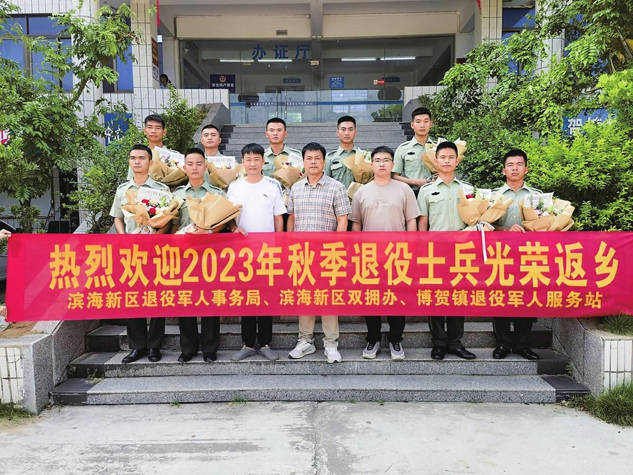 9月6日、7日,滨海新区博贺镇、电城镇分别举行2023年首批秋季退役士兵返乡欢迎仪式,滨海新区退役军人事务局和博贺镇、电城镇有关领导同志为光荣返乡的退役士兵献上鲜花,激励广大退役士兵秉承军人传统、珍惜军人荣誉、永葆军人本色,把个人奋斗和服务社会相结合,用勤勉浇灌幸福之花、用实干培育幸福之果、用奋斗开辟幸福之路。