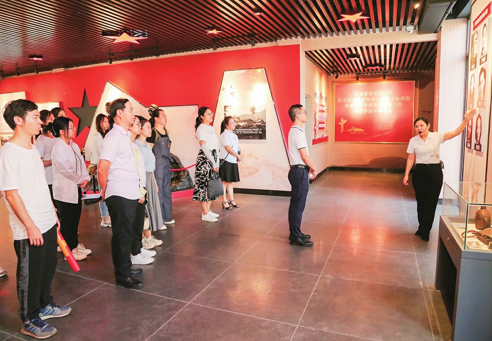 齐列队,拾级而上,怀着崇敬的心情进入展厅缅怀革命先烈。一幅幅珍贵的老照片、一件件历史文物、一个个真实故事,仿佛重现着革命先辈们用生命书写的峥嵘岁月,奏响一曲曲催人奋进的革命之歌。各位党员驻足观看,细心品味,认真聆听讲解员的生动解说,缅怀革命先烈不畏牺牲的英雄事迹,追忆革命先辈的丰功伟绩,坚定为共产主义事业奋斗的信念(见右图,茂名日报社全媒体记者李颜东摄)。