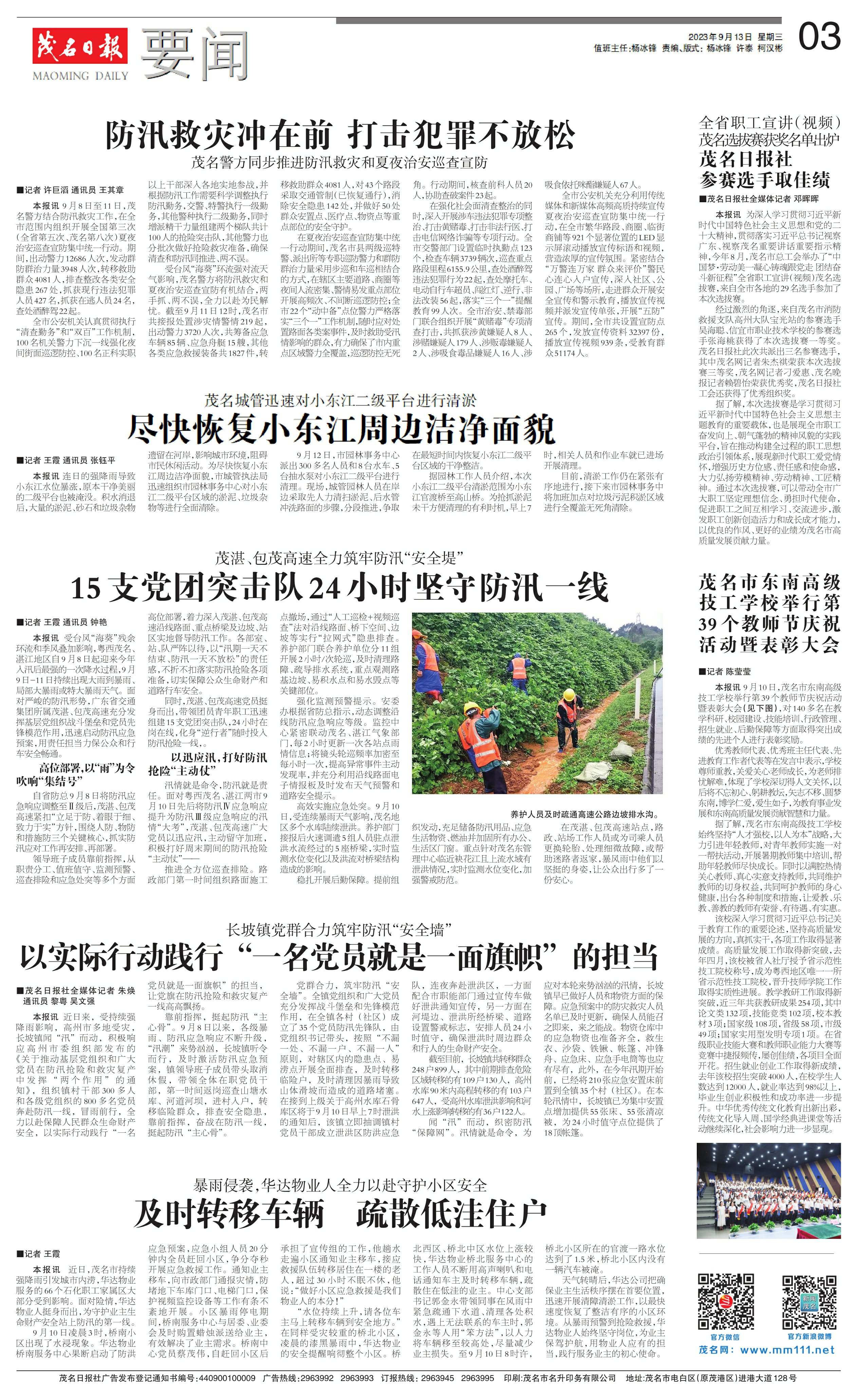 15支党团突击队24小时坚守防汛一线
