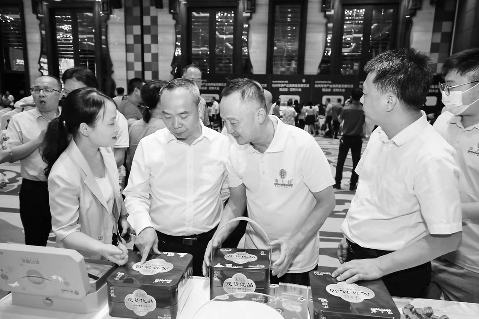 在化州月饼产业高质量发展交流暨品鉴·定制大会现场,化州顶上佳负责人向化州市领导以及珠三角参会人员介绍化州月饼创新工艺。 茂名日报社全媒体记者康乾摄
