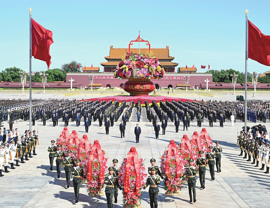 9月30日上午,党和国家领导人习近平、李强、赵乐际、王沪宁、蔡奇、丁薛祥、李希、韩正等来到北京天安门广场,出席烈士纪念日向人民英雄敬献花篮仪式。 新华社记者申宏摄