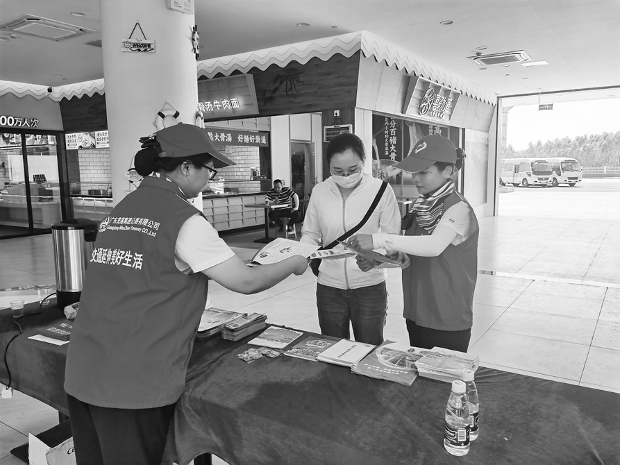 茂湛高速志愿者在服务区开展便民服务和交通安全义务宣传。