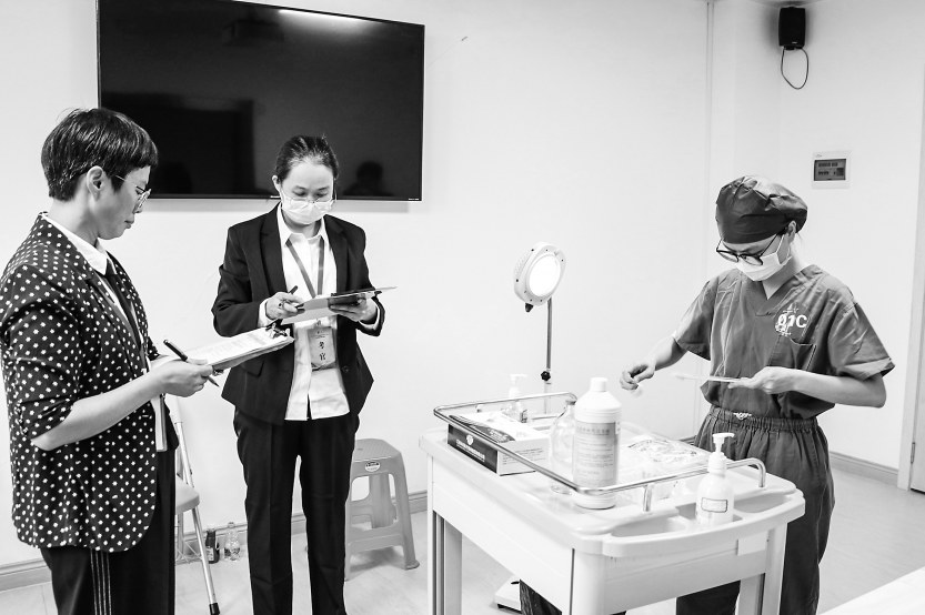 此次竞赛分为知识竞答、综合笔试、操作技能三大部分,重点考核参赛选手们对妇幼健康专业知识、相关政策文件和规范、实际操作技巧等的掌握和熟练情况。其中,知识竞答分为必答题和团队抢答题两个环节;综合笔试采取人机对话考试方式进行,监考员进行全程监督;操作技能设有“危重孕产妇救治”“危重新生儿救治”“宫颈癌防治”“儿童眼保健”4个项目,并邀请妇幼健康领域专家担任评委进行现场打分。