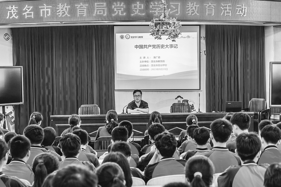 本报讯为继承和弘扬党的传统革命精神,培养青少年的历史文化自信,根据《关于在全党开展党史学习教育的通知》文件精神,10月7日上午,茂名市官山学校组织八年级全体师生召开了以“赓续红色血脉,争传革命薪火”为主题的党史学习教育专题讲座。讲座由该校党总支书记、校长莫广道主讲。
