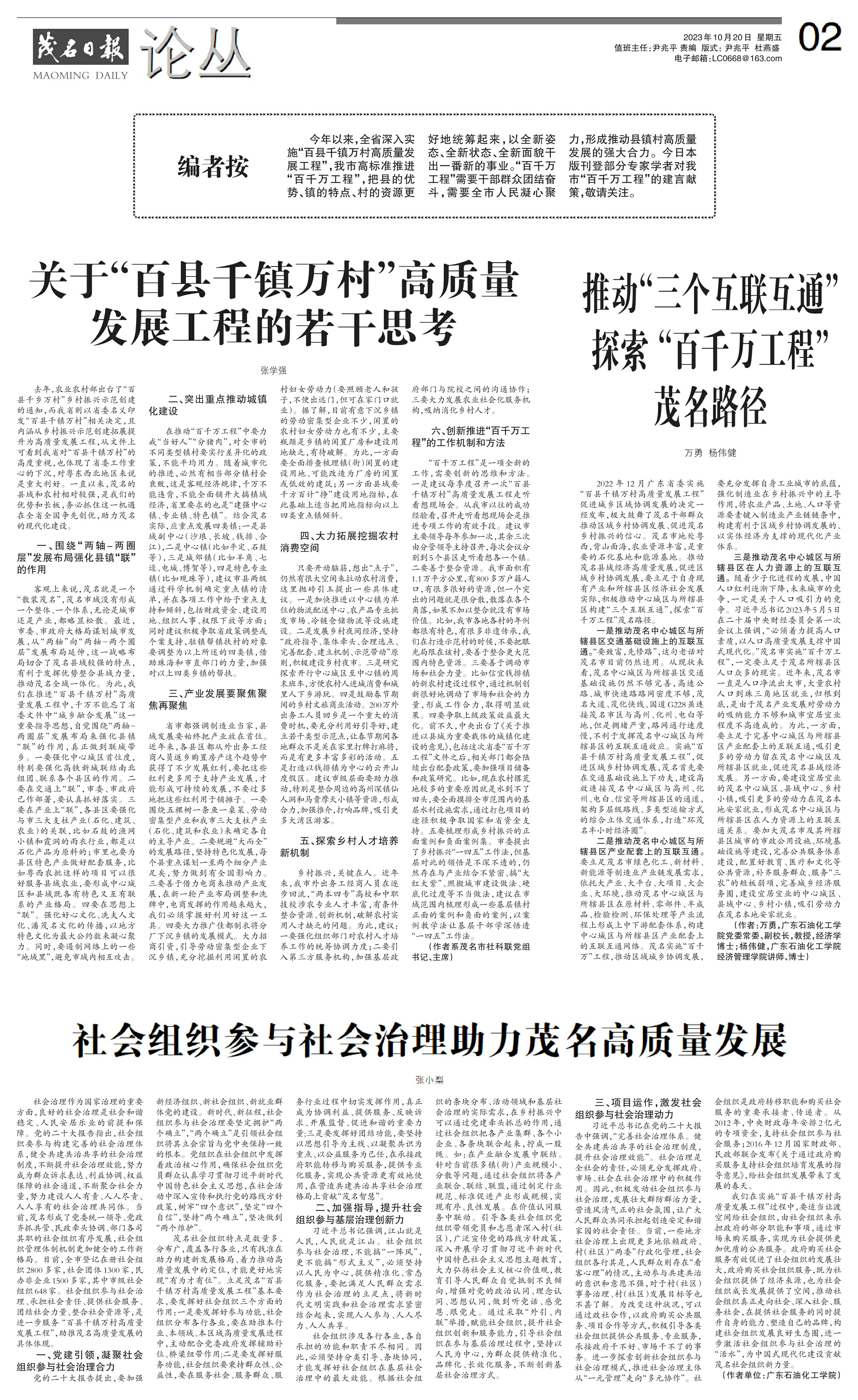 推动“三个互联互通”探索“百千万工程”茂名路径