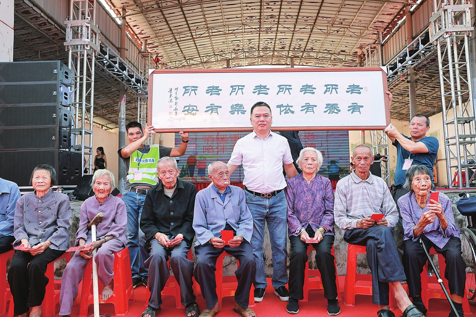 本报讯为弘扬中华民族的传统美德,展示社会各界对老年人的尊重和关爱,10月23日,茂南区金塘商会携手金塘镇州村开展了一场精彩的重阳敬老活动,为州村老人送去关心和问候,让老人度过一个欢乐祥和的重阳佳节。
