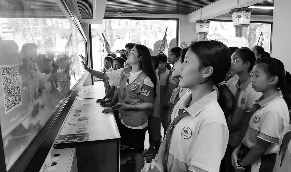 学生在冼夫人信俗数字文化长廊进行数字文化馆体验活动。茂名日报社全媒体记者黄信涛摄