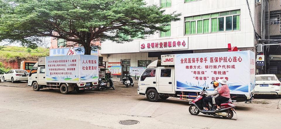 本报讯 “2024年城乡居民医保参保征缴通告......”自10月中下旬以来,高州市医保局的医保宣传车就出现在该市城区的大街小巷,广播的声音回荡在各乡镇村的田间地头。