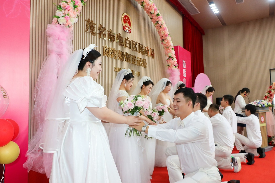 “海誓山盟伊见倾心”茂名伊春蜜月旅行+婚拍活动在晏镜疍家墟举行,来自茂名、伊春的新人在亲朋好友和现场游客的见证下喜结良缘。 本报记者 甘杨松 吴云杰 摄
