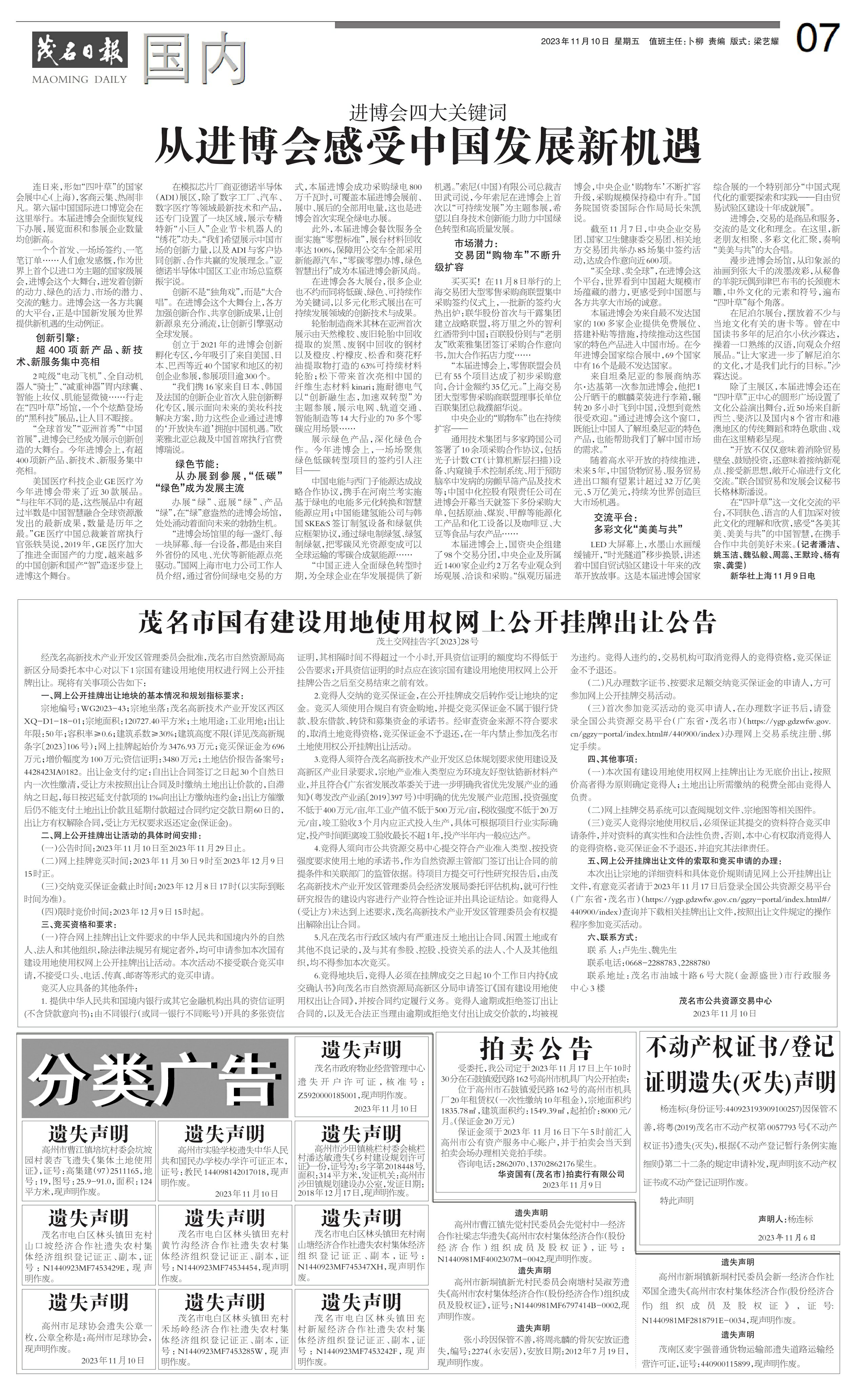 茂名市国有建设用地使用权网上公开挂牌出让公告