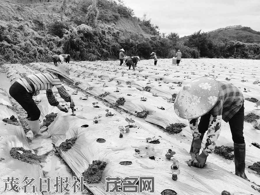 本报讯立冬之日,正是合利村农忙之时,田间地头人头攒动、机声隆隆,一派忙碌的劳动场景。电白区观珠镇合利村村民们抓住风调雨顺、气候温暖的时节,抢种冬季蔬菜,除草覆膜,安装滴灌管线,趁着雨天栽种茄子苗。