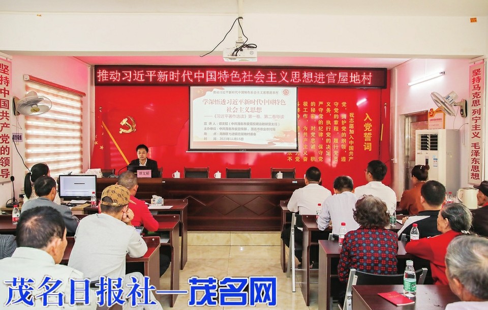 本报讯11月15日上午,由市委宣传部、市农业农村局主办的推动习近平新时代中国特色社会主义思想进农村宣讲活动在高新区七迳镇官屋地村举行。市委党校政治教研室主任谭文韬进行“学深悟透习近平新时代中国特色社会主义思想——《习近平著作选读》第一卷、第二卷”主题授课,村党支部干部、党员村民60多人参加讲座。