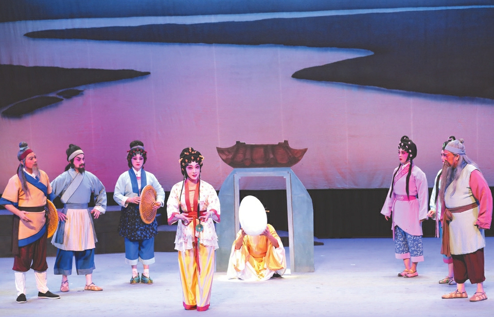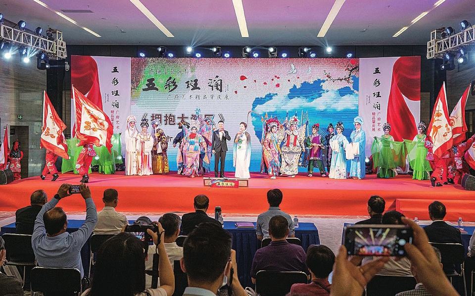 2022年5月,五彩斑斓广府艺术精品肇庆展在肇庆市博物馆开幕。图为肇庆市粤剧团为市民们带来节目《拥抱大湾区》。西江日报记者曹笑摄