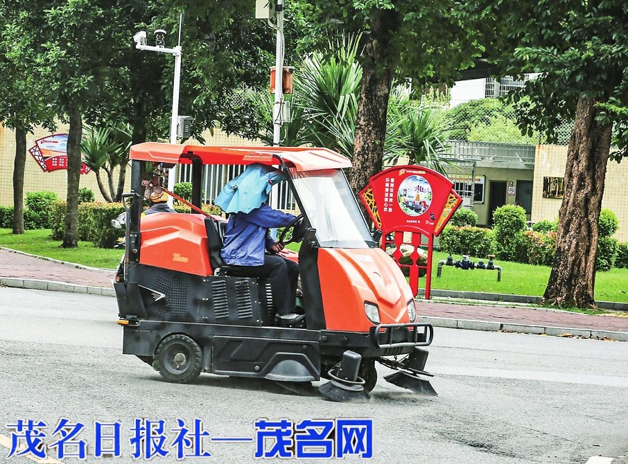 ▲华达物业为小区道路保洁。茂名日报社全媒体记者岑稳摄