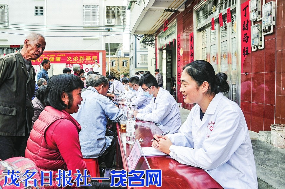 本报讯近日,市委统战部、市卫健局、市中医院组织党外医护人员到信宜市白石镇河坝铺村开展“同心促健康 义诊到基层”活动(如右图)。由农工党茂名市委会副主委、市中医院副院长徐国帆领衔的市中医院内科、康复治未病、外科、儿科、妇产科专家团队坐诊,由护士长、主管护师、主管药师组成的配药团队坐镇,堪称把“半个三甲医院”建到了村上。