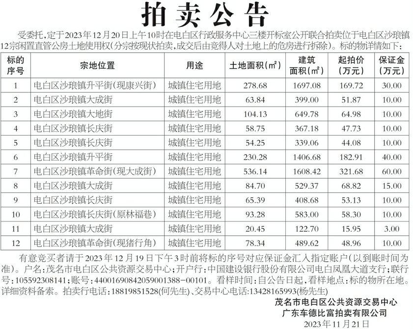 化州市土地出让公告