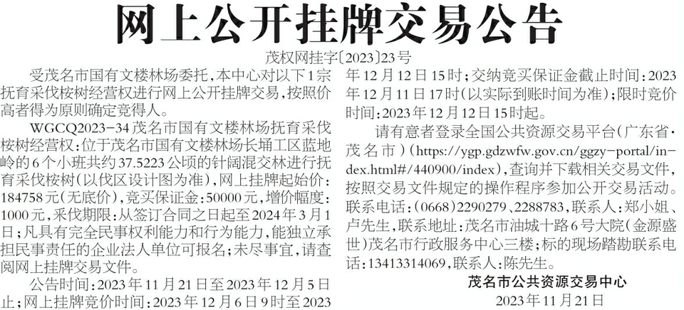 网上公开挂牌交易公告