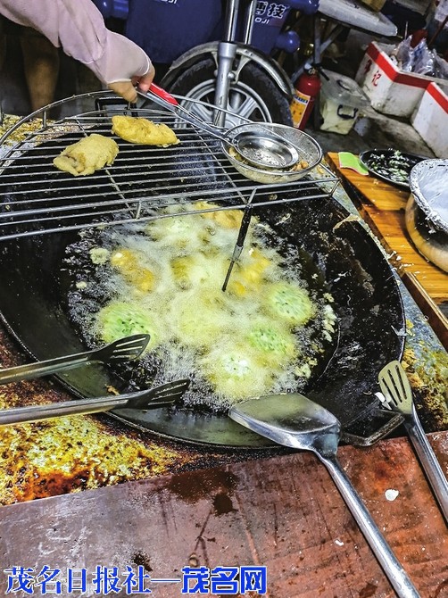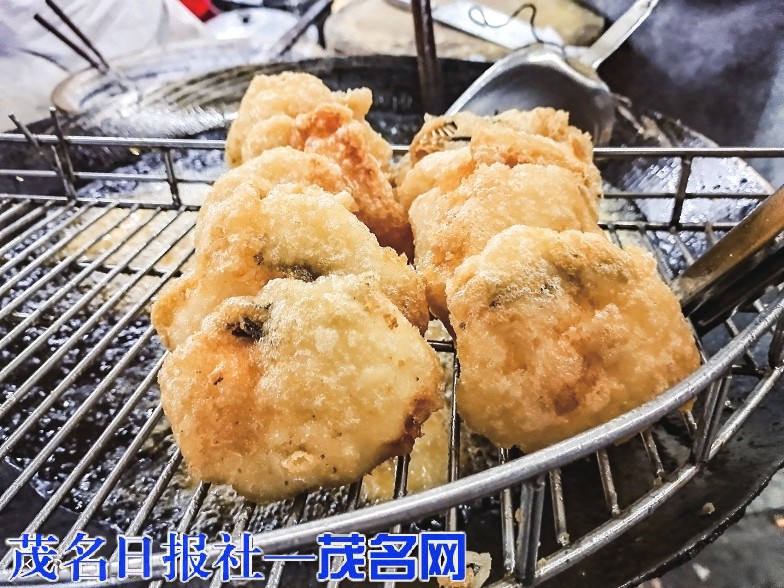 在电城,如果说哪一道美食最能体现这里的特色和风味,那一定是电城蚝炸和电城鱼炸。这里的人说起这两炸,前面是一定要带上地方定语的。原来很多人并不知晓电城蚝炸这道美食,毕竟这只是一道民间小吃,2016年全国各大媒体报道的一段真实的寻亲故事让它名噪一时,开始走进大众视野。电城一个7岁的孩子被辗转拐卖到云浮,他一直在寻找自己的亲人。十几年后,在云南一个小镇打工时,在一个电白人开的小吃店,偶然吃到一种叫蚝炸的小吃,他突然就有种熟悉的感觉,吃着吃着竟流下了眼泪,他终于想起这是自己小时候经常吃过的,这是故乡的特产。凭着记忆中的味道,他最终找回了自己的家乡,找回了亲生父亲,真是个传奇。就像《舌尖上的中国》说“无论脚步走多远,在人的脑海中,只有故乡的味道熟悉而顽固,它就像一个味觉定位系统,一头锁定了千里之外的异地,另一头则永远牵绊着记忆深处的故乡。”吃,是故乡的记忆,还真是这么一回事。