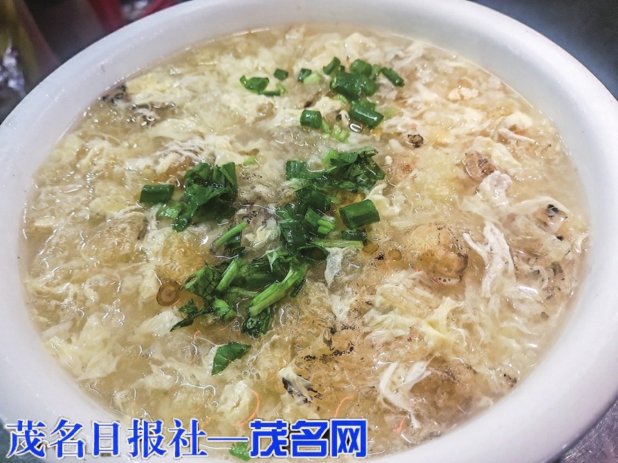 真是这么好吃吗?吴泓豫让老板给我们各盛了一碗,熬制后的刺龟皮如网状,有肉丝、蛋花夹杂其间,几粒葱花漂在汤面上,还真能勾起食欲,喝一口,汤鲜肉滑,说不出的美味。