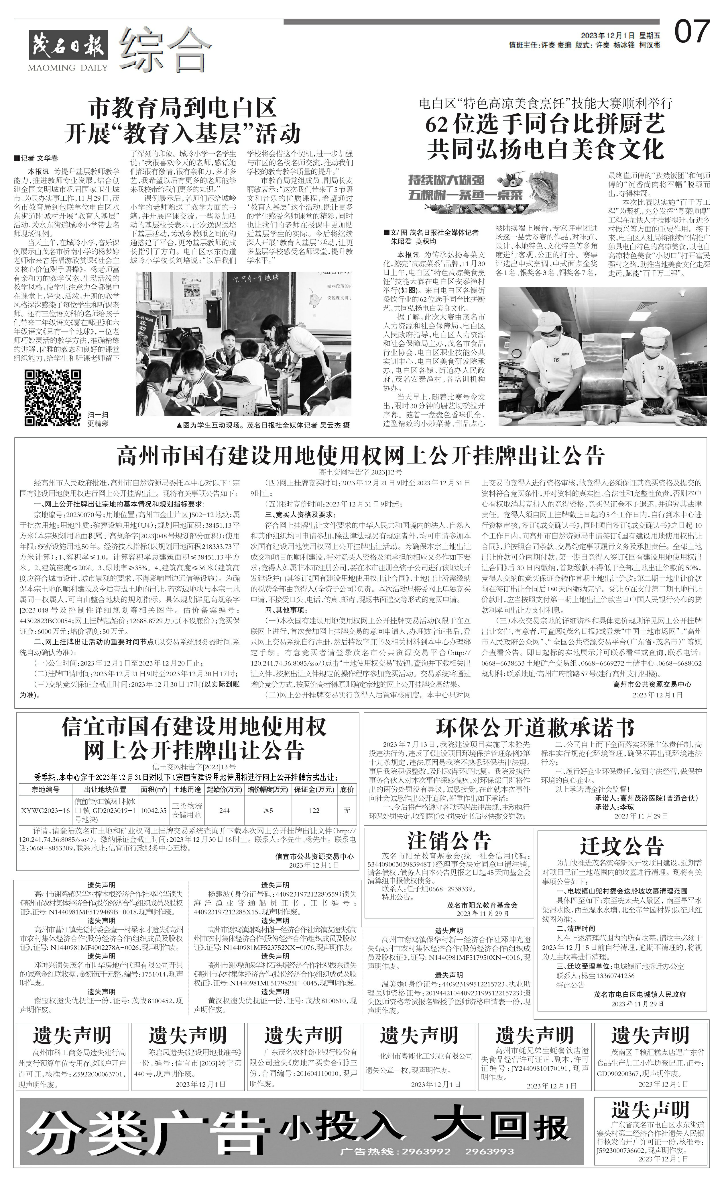 市教育局到电白区开展“教育入基层”活动