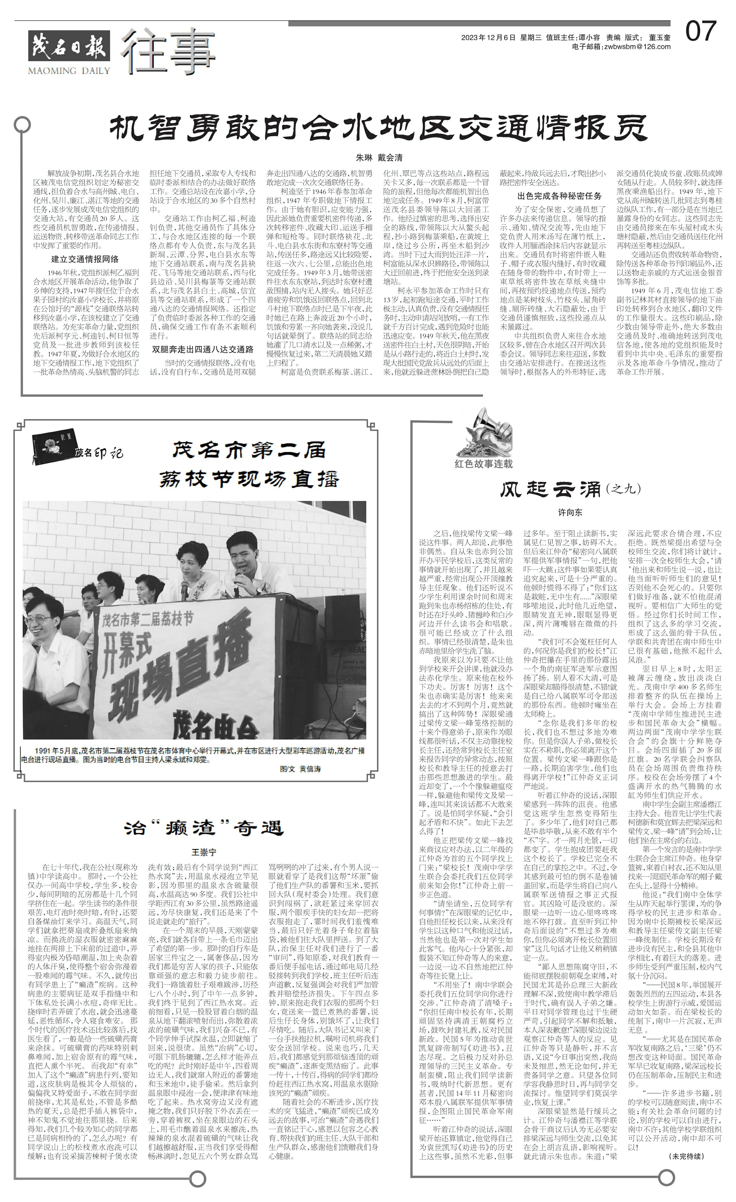 在七十年代,我在公社(现称为镇)中学读高中。那时,一个公社仅办一间高中学校,学生多,校舍少,每间阴暗的瓦房都是十几个同学挤住在一起。学生读书的条件很艰苦,电灯泡时亮时暗,有时,还要自备煤油灯来学习。高温天气,同学们就拿把葵扇或折叠纸扇来纳凉。而换洗的湿衣服就密密麻麻地挂在两排上下床前的过道中,弄得室内极为昏暗潮湿,加上夹杂着的人体汗臭,使得整个宿舍弥漫着一股难闻的霉气味。不久,就传出有同学患上了“癞渣”疾病。这种病患的主要病征是双手指缝中和下体私处长满小水痘,奇痒无比。挠痒时若弄破了水泡,就会迅速蔓延,恶性循环,令人寝食难安。那个时代的医疗技术还比较落后,找医生看了,一般是给一些硫磺药膏来涂抹。可硫磺膏的药味特别刺鼻难闻,加上宿舍原有的霉气味,直把人熏个半死。而我却“有幸”加入了这个“癞渣”病患行列,要知道,这皮肤病是极其令人烦恼的,偏偏我又特爱面子,不敢在同学面前挠痒,尤其是私处,不管是多酷热的夏天,总是把手插入裤袋中,神不知鬼不觉地往那里挠。后来得知,我们几个较为知心的同学都已是同病相怜的了,怎么办呢?有同学说山上的松枝煮水泡洗可以缓解;也有说采摘苦楝树子煲水烫洗有效;最后有个同学说到“西江热水窝”去,用温泉水浸泡立竿见影,因为那里的温泉水含硫量很高,水温高达90多度。我们公社中学距西江有30多公里,虽然路途遥远,为尽快康复,我们还是来了个说走就走的“旅行”。