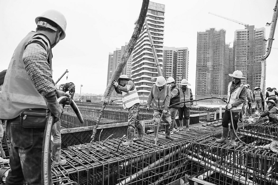 施工人员在现场浇筑施工。茂名日报社全媒体记者岑稳摄