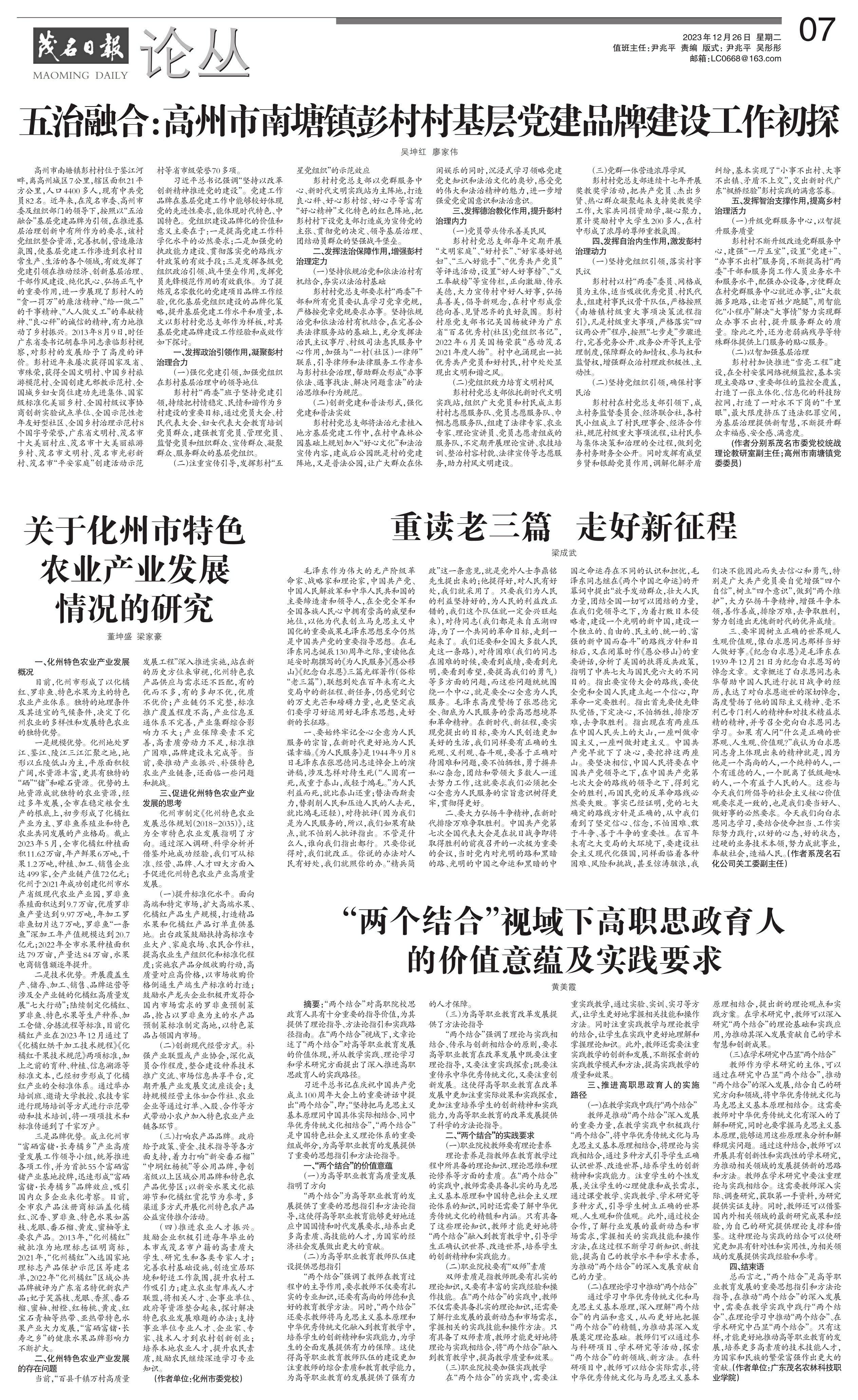 五治融合:高州市南塘镇彭村村基层党建品牌建设工作初探