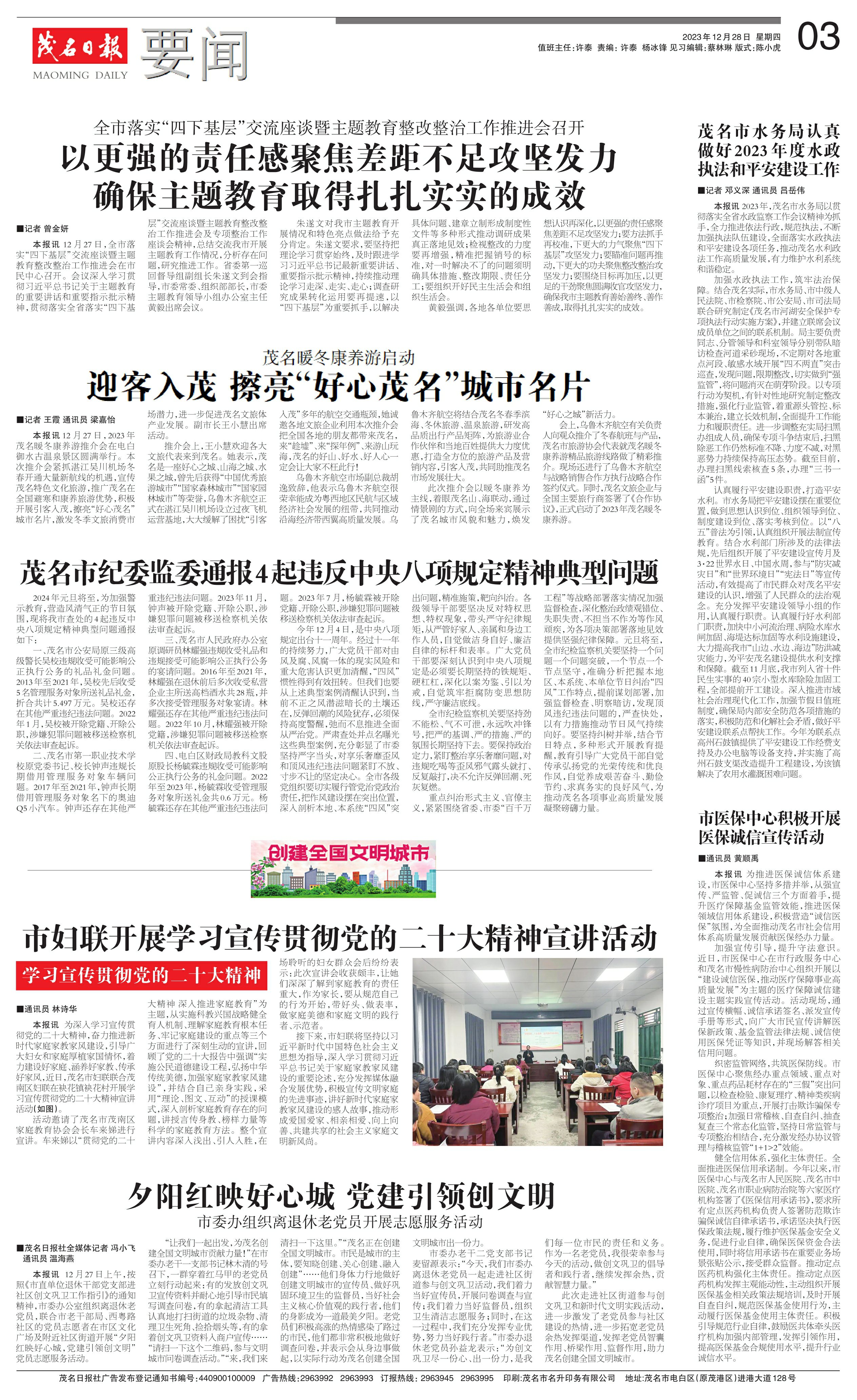 茂名市水务局认真做好2023年度水政执法和平安建设工作