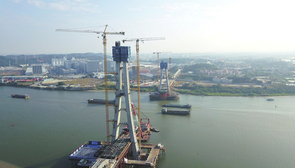 广湛高铁佛山特大桥首片钢梁吊装完成