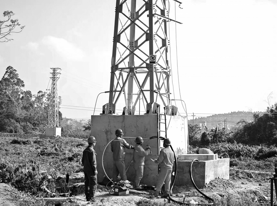 在化州市良光镇10千伏旺财线陂边村附近的电力施工现场,工作人员正在制作电缆头。通讯员颜诗华摄