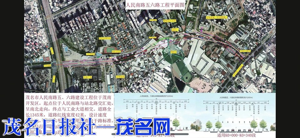 人民南五、六路是人民南路由北向南的延长线,该项目起点位于人民南路与站北路交汇处,终点与工业大道相交。道路全长1345米,红线宽度42米,设计速度40公里/小时,双向六车道,采用城市主干路标准建设。人民南五、六路周边有碧桂园大名府、世茂锦城、兴和广场、茂南一小等,该条“断头路”打通后,将进一步推动站南片区的路网规划建设和交通发展,推动该片区社会经济发展,改善城市居住环境,增强群众的获得感和幸福感,助力茂名经济社会高质量发展。