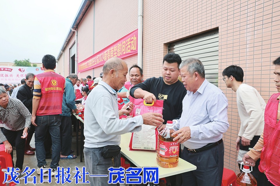 本报讯“很开心,能领到这么多东西。”“我们家有3个老人,我领取了3份。”“村里有产业了,我们的村子也越变越好了。”2月4日上午,茂南区金塘镇南埜村70岁及以上的老年朋友们欢聚在茂名市福稻粮油加工有限责任公司,参加充满温馨与爱意的“共建共治促振兴关怀慰问送真情”春节敬老慰问活动。活动由茂南区金塘镇人民政府、国家林草局驻金塘镇帮镇扶村工作队指导,金塘镇南埜村委会主办,并得到茂名市福稻粮油加工有限责任公司的慷慨赞助。