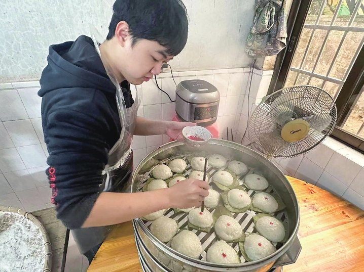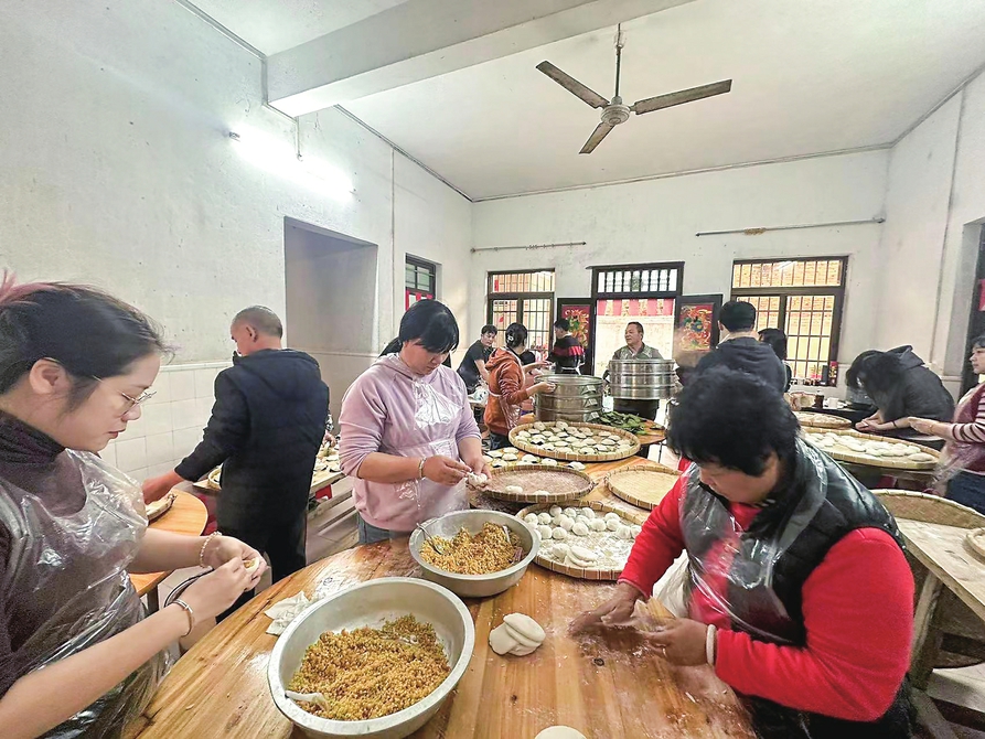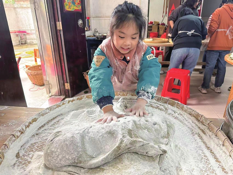 籺,是一种深受茂名人喜爱的特色美食,逢年过节的餐桌上常常能见到它。昨天,在茂南区金塘镇谭屋村委会一户庭院内,全家男女老少欢聚一堂,齐齐做艾籺过节。他们分工合作,有的备料、擀皮,有的和面、包籺。家中长辈手把手教年轻人做籺,传承非遗手艺,孩子们也学得认真,大家乐也融融,在欢声笑语的祥和气氛中,喜迎新春佳节。