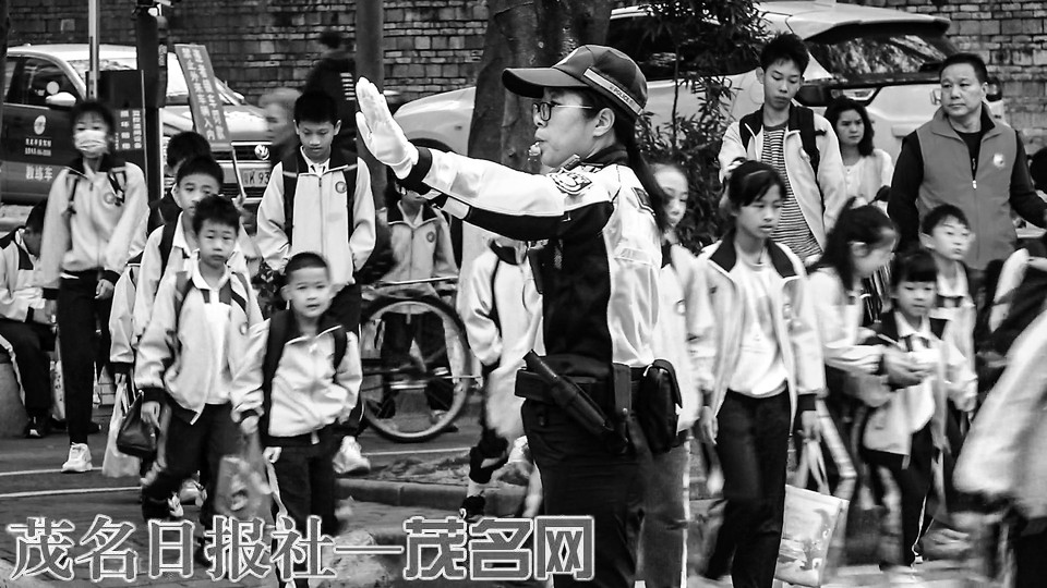 本报讯“同学们,注意车辆!”2月20日早上8时许,辖区派出所民警李勇正在愉园小学门口提醒返校学生。“一早就看到民警在执勤了,我们很放心!”一位送孩子上学的家长说。开学第一天,茂名公安“护学岗”执勤警力早早到岗,加强学生上学、放学等重点时段路面巡逻防控力度,对学校路口及周边交通秩序进行维护和疏导,全力保障师生安全,确保校园周边治安、交通状况良好。