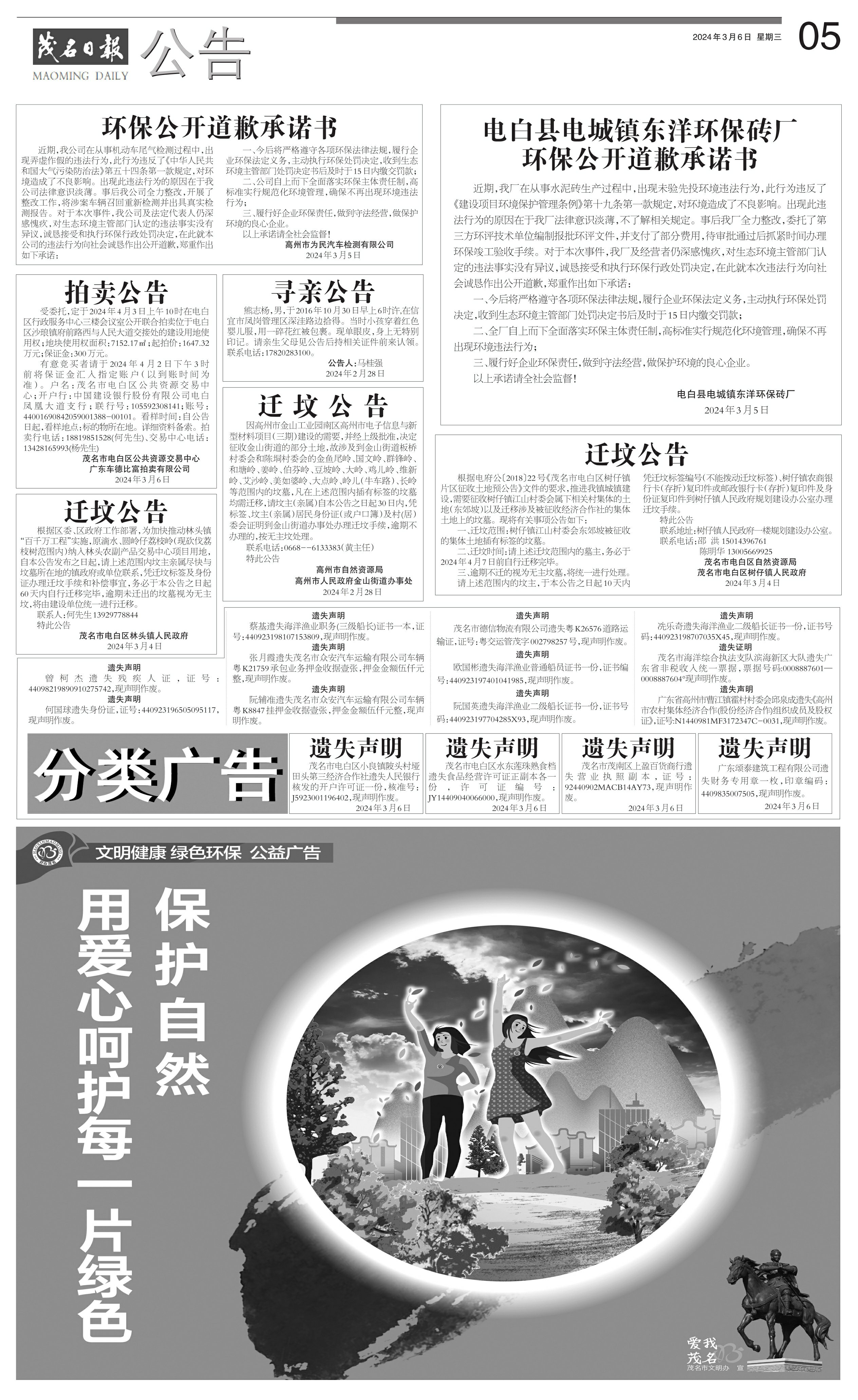 电白县电城镇东洋环保砖厂环保公开道歉承诺书