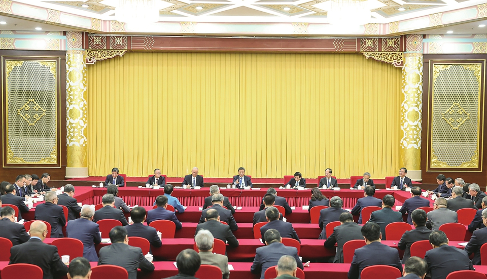 中共中央政治局常委、全国政协主席王沪宁,中共中央政治局常委、中央办公厅主任蔡奇参加看望和讨论。