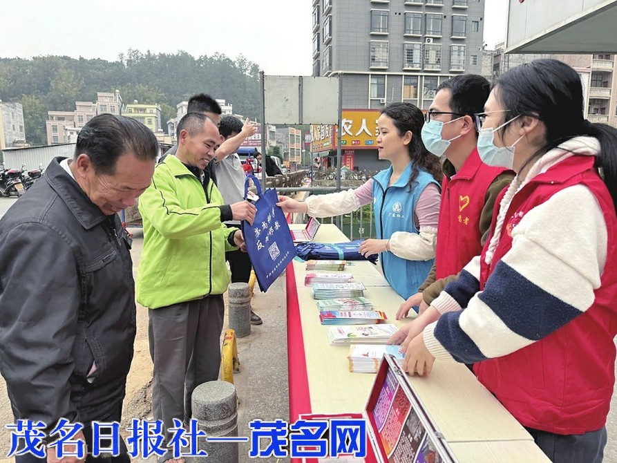 工作人员向群众派发宣传资料。记者甘杨松通讯员刘鹏宇 摄
