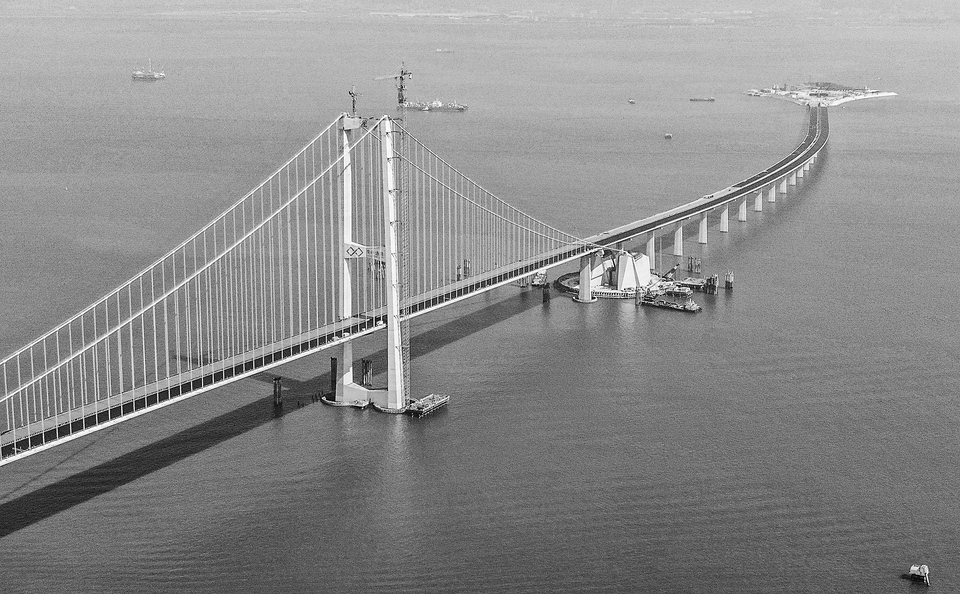 ▲这是2023年11月28日拍摄的深中通道伶仃洋大桥东塔及西人工岛(无人机照片)。新华社记者邓华摄