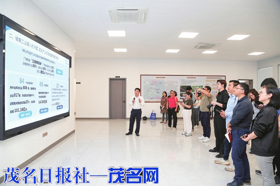 佛山(茂名)产业转移合作园建设管理委员会主任向采访团介绍合作园建设情况。