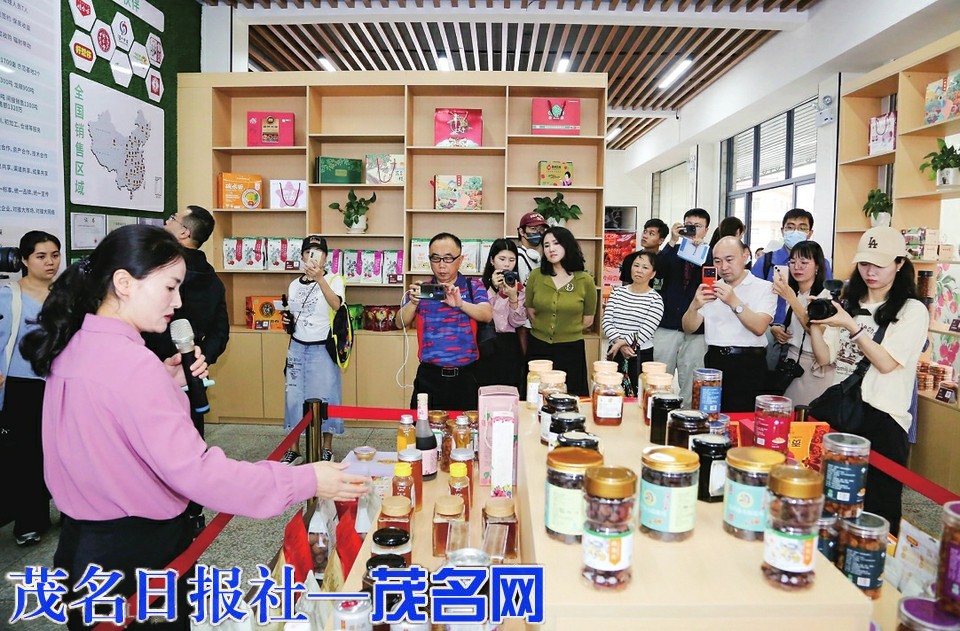 在根子柏桥龙眼荔枝专业合作社,展厅摆放着龙眼干、荔枝干、荔枝蜜、荔枝酥等加工品,琳琅满目,工作人员忙着在向游客们介绍各种产品。