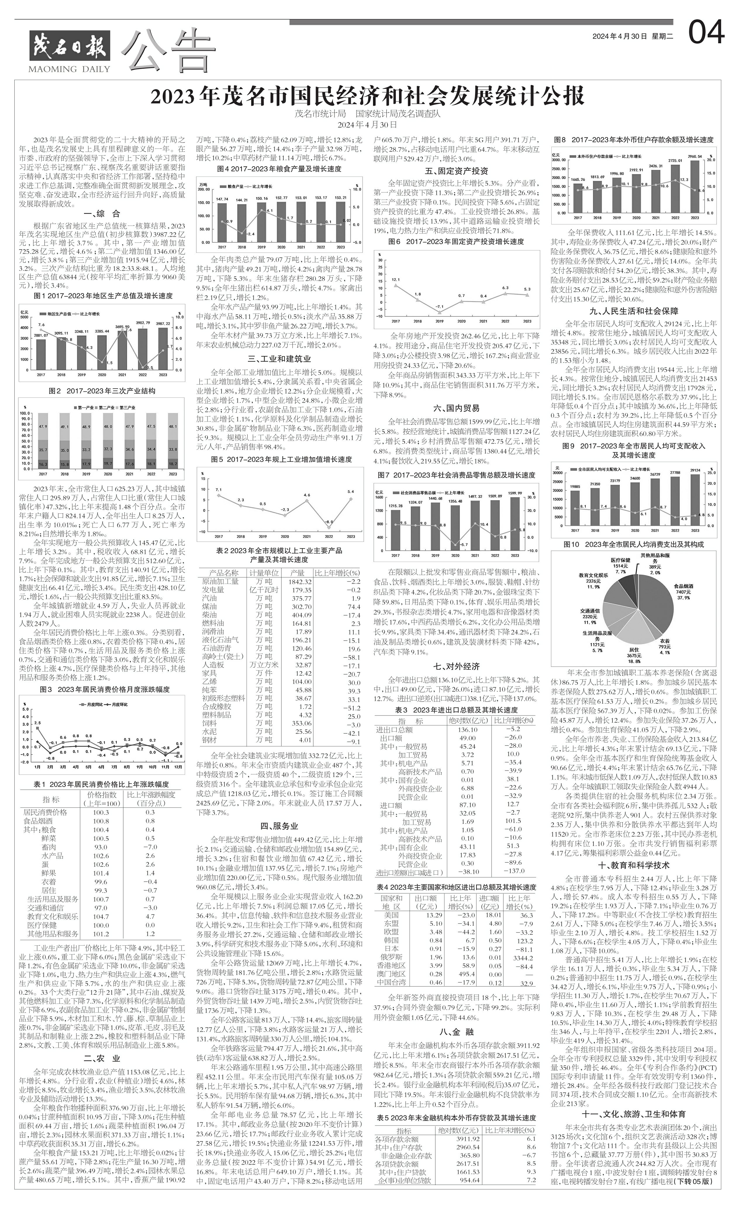 2023年茂名市国民经济和社会发展统计公报