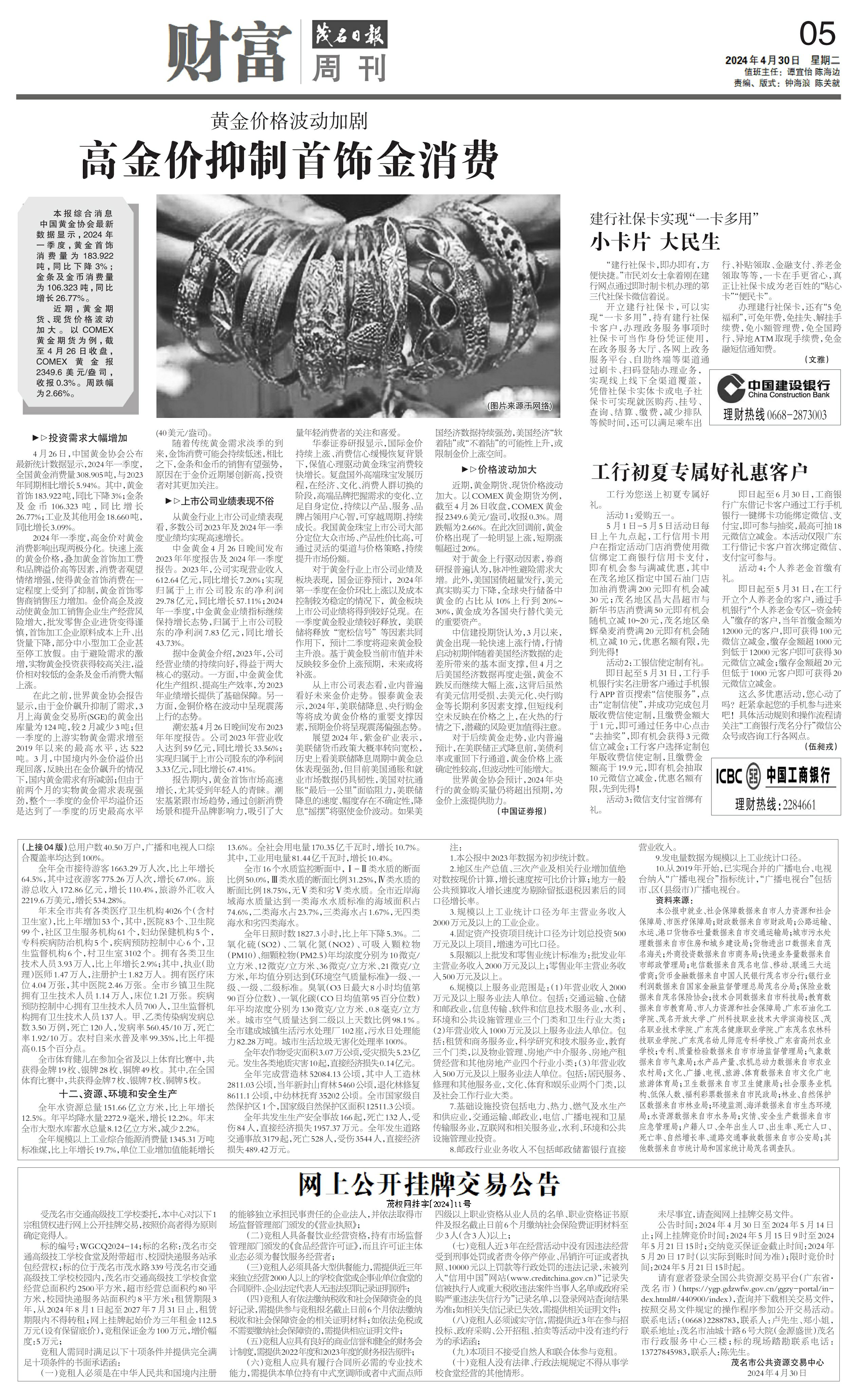 高金价抑制首饰金消费
