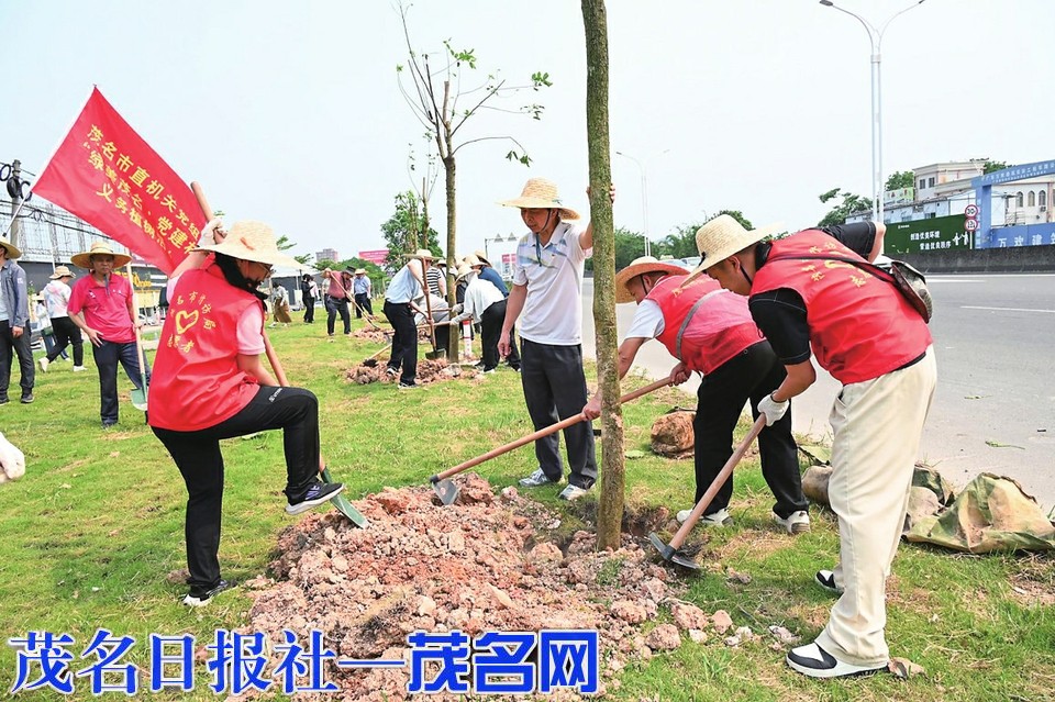 本报讯日前,市直机关党组织开展“绿美广东·党建林”植树活动,市直机关各单位党组织党员代表近500人分别到电白区坡心镇车头仔村委会众车村上车头堀村河堤边、高州市金山开发区金星大道旁开展义务植树活动,树立了良好的机关党员形象。