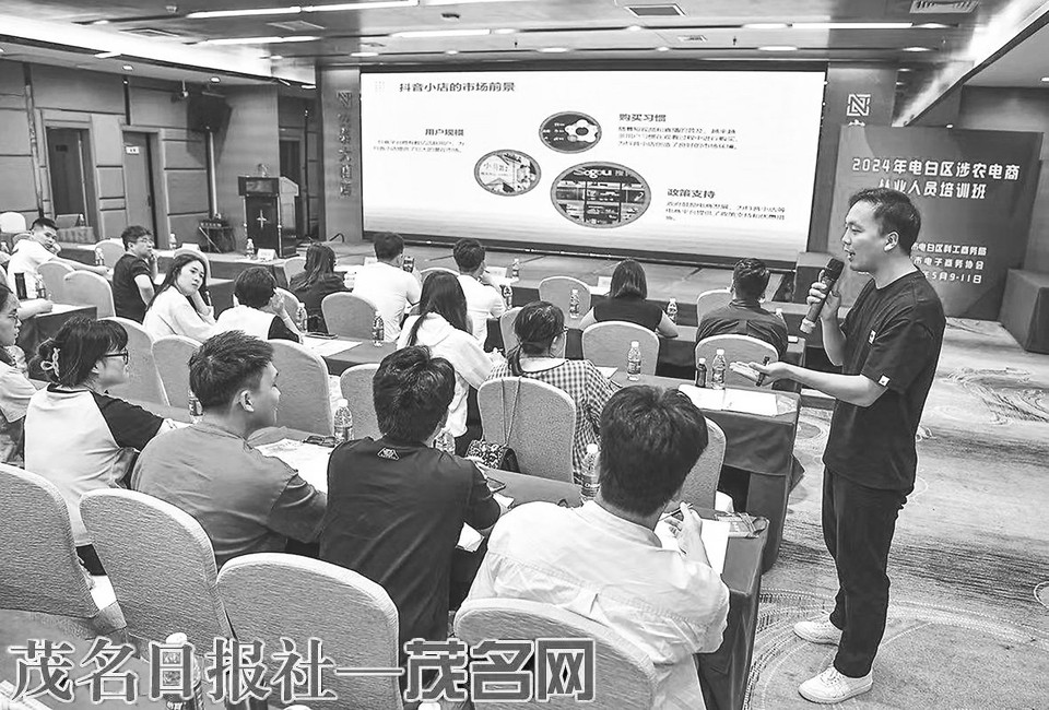 本报讯为响应茂名市“‘柏桥讲堂’十万电商大培训计划”,大力提升电白区涉农电商从业人员实操技能,推动电商行业提质增效,昨日,由电白区科工商务局主办,茂名市电子商务协会承办的“电白区2024年涉农电子商务从业人员培训班”在电白区水东街道正式开班。在为期三天的培训中,来自该区的70多名涉农电子商务从业人员将学习一系列定制课程,不断壮大电白电商人才储备。