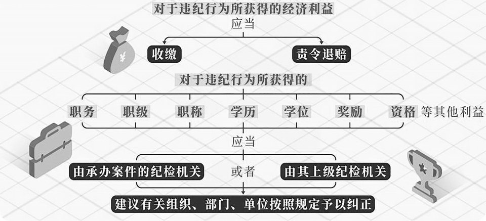 对于违纪行为所获得的职务、职级、职称、学历、学位、奖励、资格等其他利益,应当由承办案件的纪检机关或者由其上级纪检机关建议有关组织、部门、单位按照规定予以纠正。