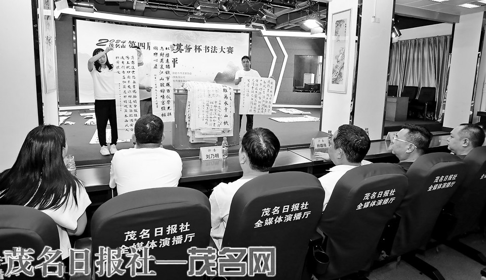 本报讯 昨日上午,由茂名市文学艺术界联合会指导,茂名日报社、茂名市书法家协会主办,茂名市盈大商贸有限公司协办,茂名日报社文化传播有限公司承办的2024茂名市第四届“汉酱杯”书法大赛初评在茂名日报社全媒体演播厅进行。