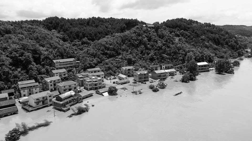 这是被洪水围困的辰溪县辰阳镇陆家湾村。新华社记者陈振海摄